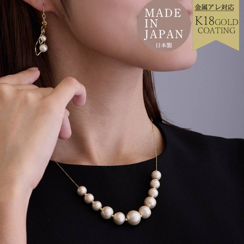 日本製 いつものコーデを華やかに。軽やかコットンパール 大人 ネックレス 送料無料