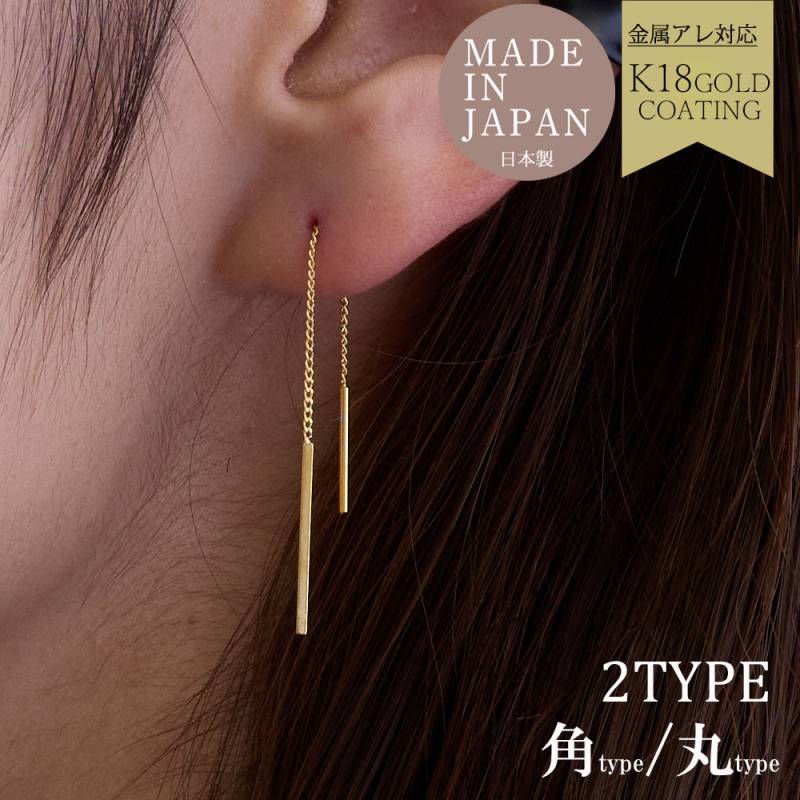 日本製 飽きのこないシンプルライン アメリカンピアス 金属アレルギー対応 ニッケルフリー 送料無料