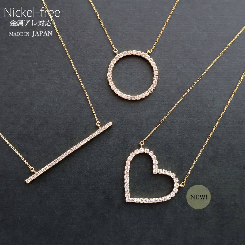 日本製 ロングネックレス リング ハート バー レディース 30代 50代 40代 K18GP