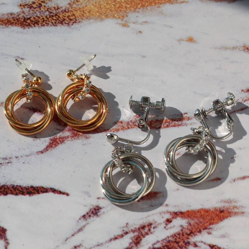 送料無料 日本製 トリニティフープのスタイリッシュピアス/イヤリング