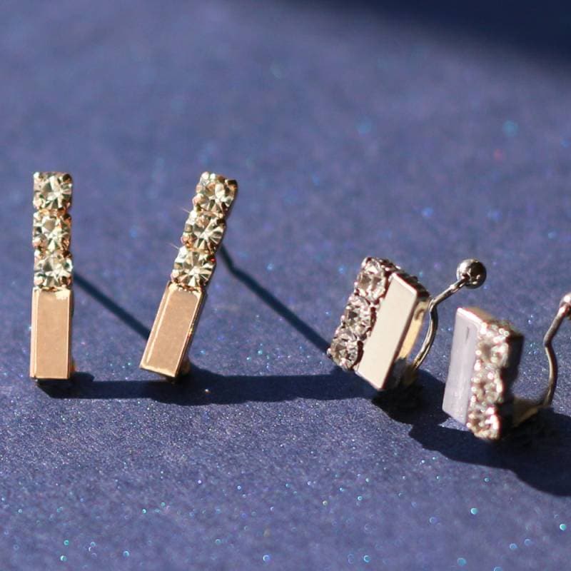 日本製 ダイヤカット イヤリング ノンホールピアス キャッチレスピアス