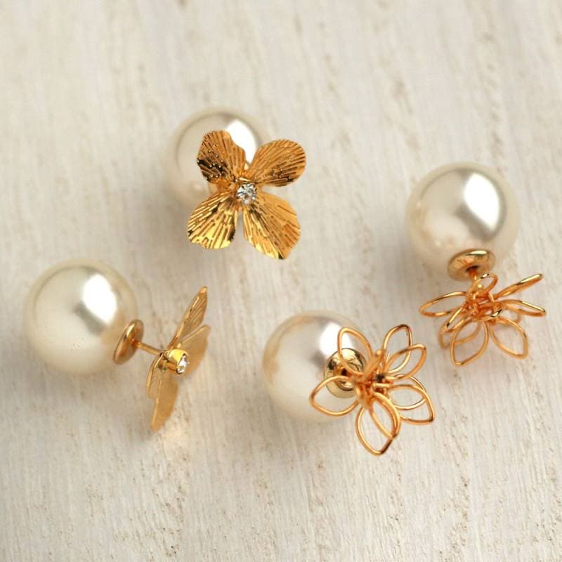 送料無料 日本製 バックパールキャッチトライバルフラワーピアス