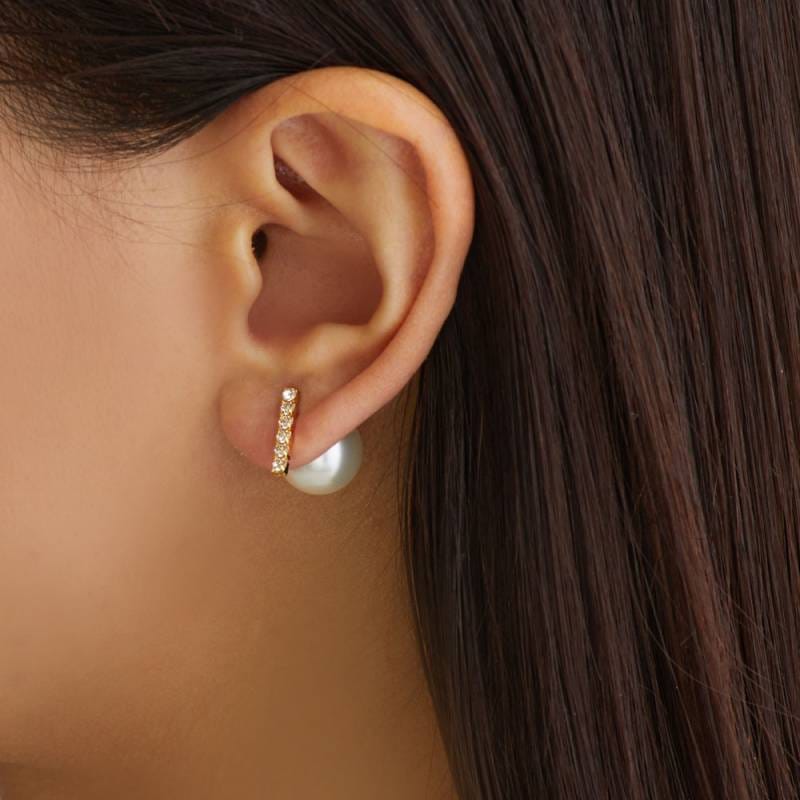 送料無料 日本製 ラインストーンバーバックキャッチパールリバーシブルトライバルピアス