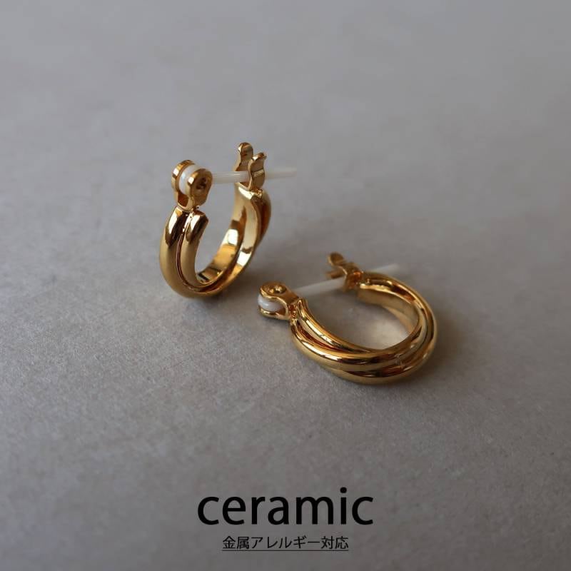 送料無料 日本製 シンプル 3連 フープ ピアス セラミック ピアス K18 フープ 小ぶり