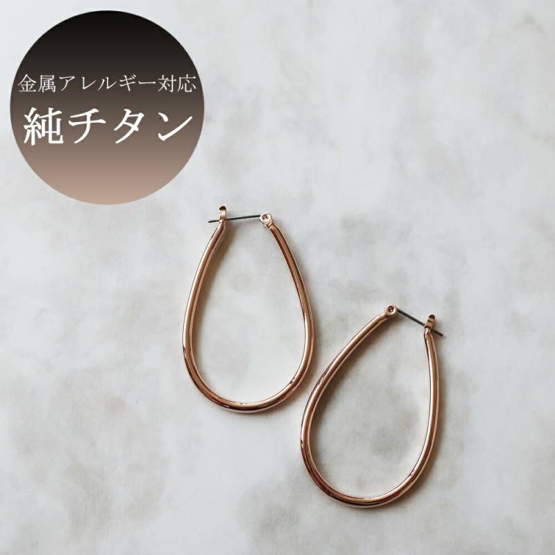 日本製 送料無料 交差クロスラインのドロップフープの純チタンキャッチレスピアス