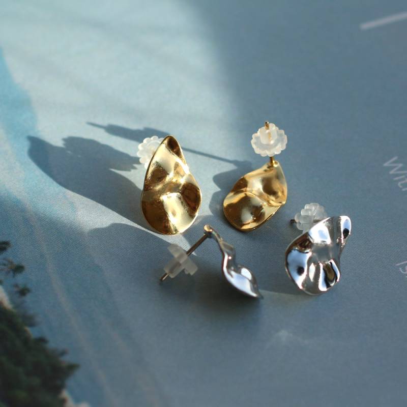 セラミックポスト/シンプルなメタルで、ふっくらデザインがこなれ感漂うピアス