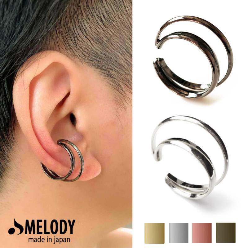 日本製 レイヤード ダブルフープ イヤーカフ 片耳用 金属アレルギー対応
