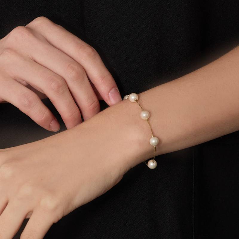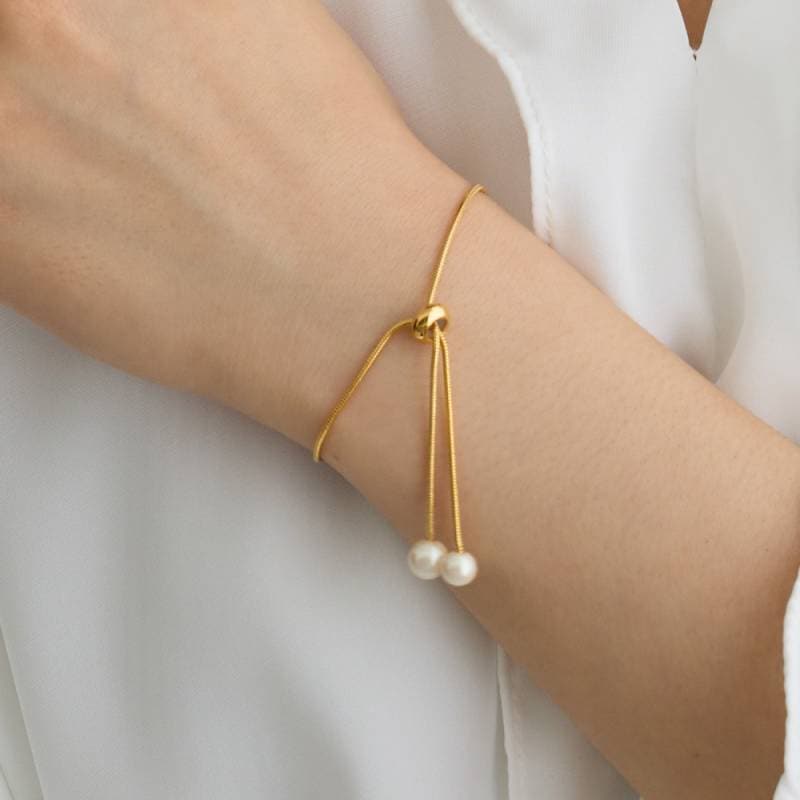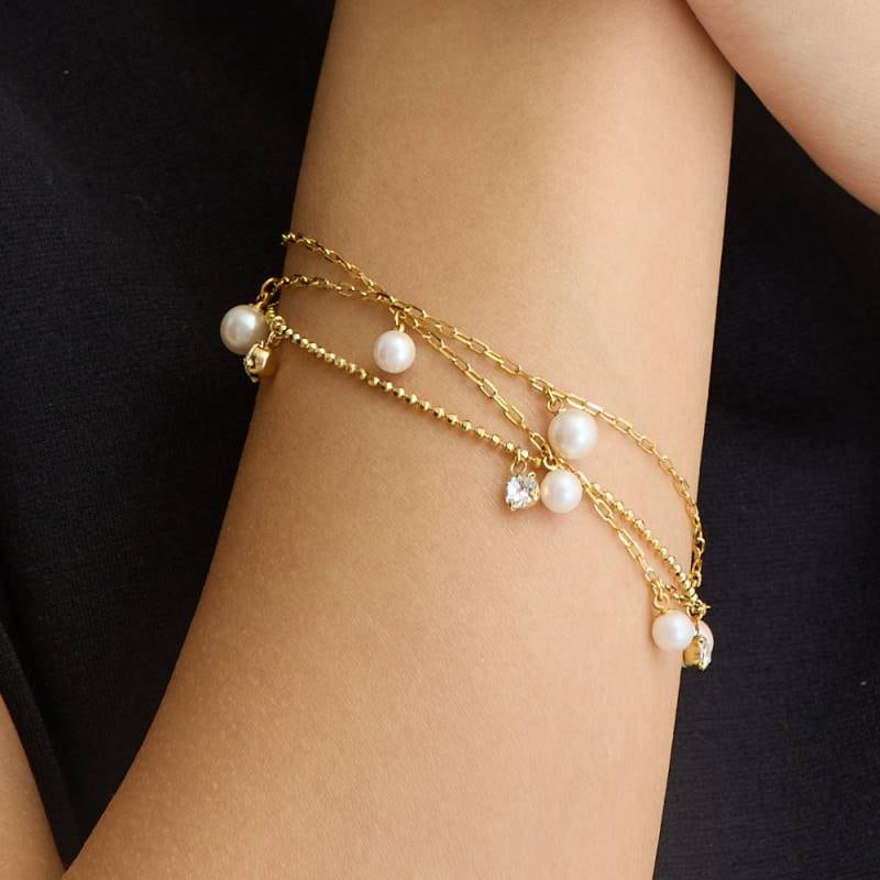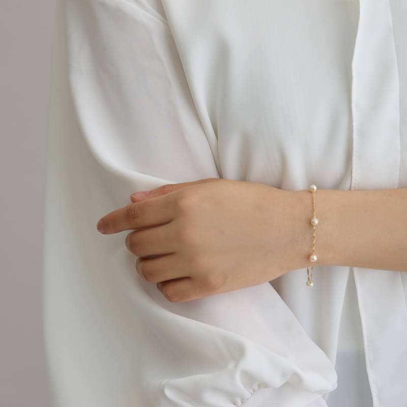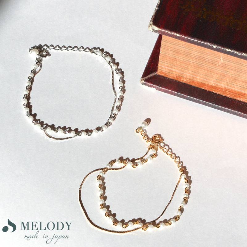 送料無料 日本製 上品に愛され華奢魅せ、2連パールブレスレット