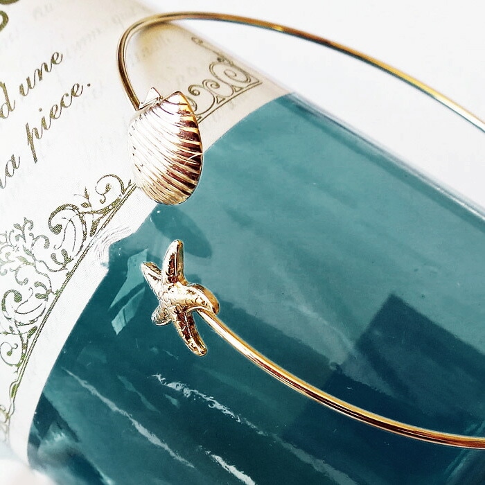 ブレスレット バングル K18GP ヒトデ シェル バングル ゴールド 18金