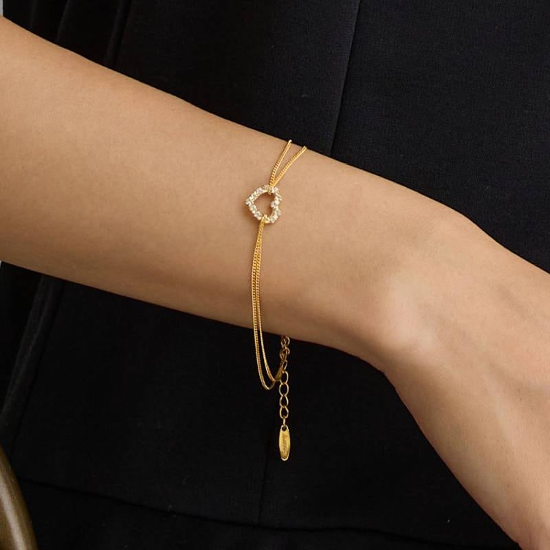 ゴールドトーンが目を惹くワンポイントオープンハートブレスレット
