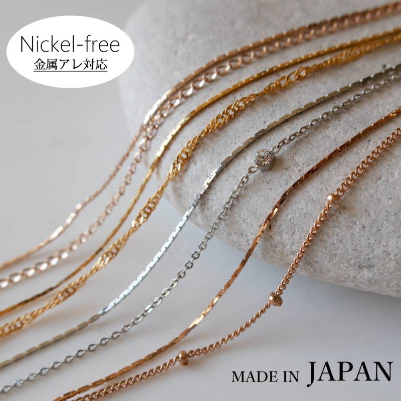 送料無料 日本製 金属アレルギー対応 メタルUチェーンブレスレット/バングル