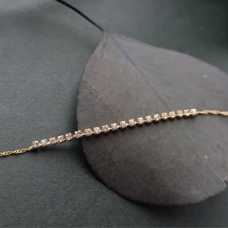 日本製 華奢 2連 ブレスレット バングル 金属アレルギー対応 K18GP ストーン タンザナイト ルビー ブラックダイヤモンド クリスタル ライトローズ