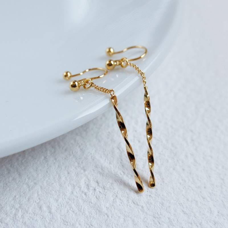 日本製 カーブ ライン イヤリング ピアス K18GP 金属アレルギー対応