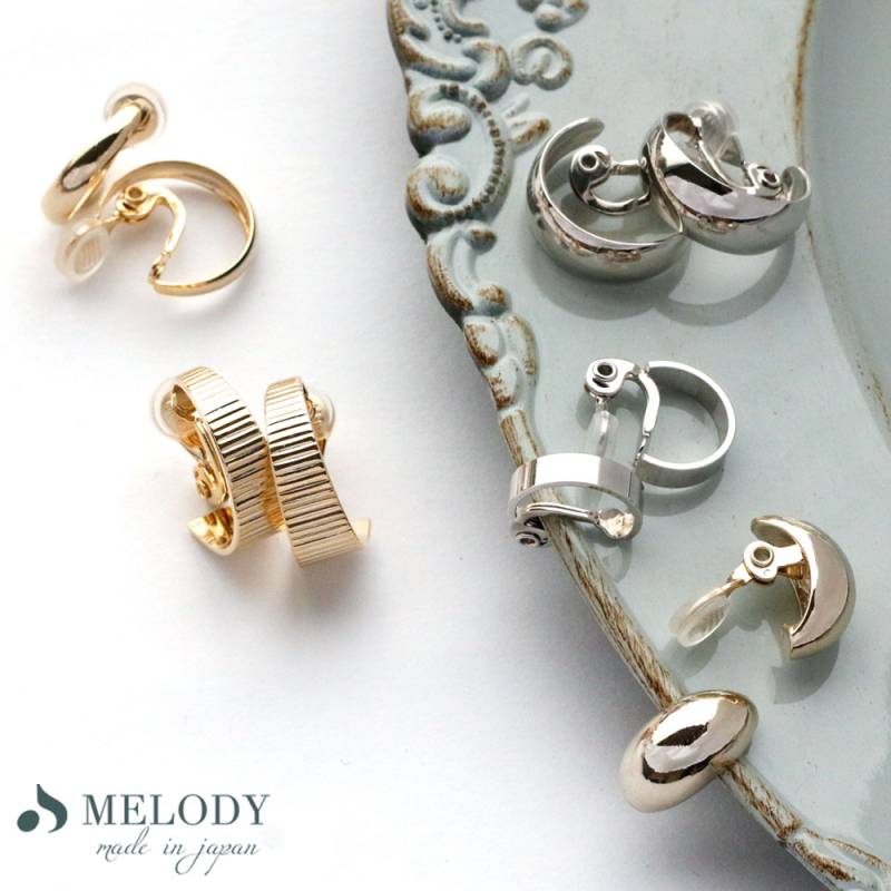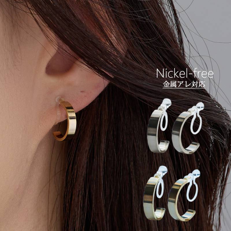 日本製 イヤリング 樹脂 ノンホールピアス 地金 フープイヤリング