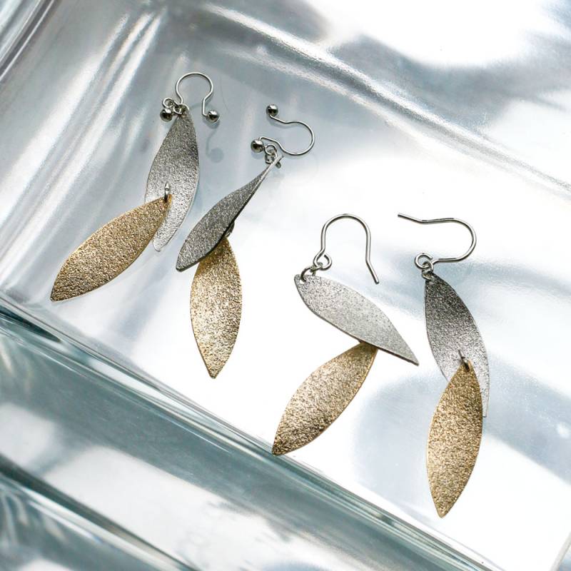 イヤリング ピアス 日本製 K18GP ノンホールピアス フック マット 樹脂 サンドブラスト あらし バイカラー 揺れる オフィス ゴールド アクセサリー・