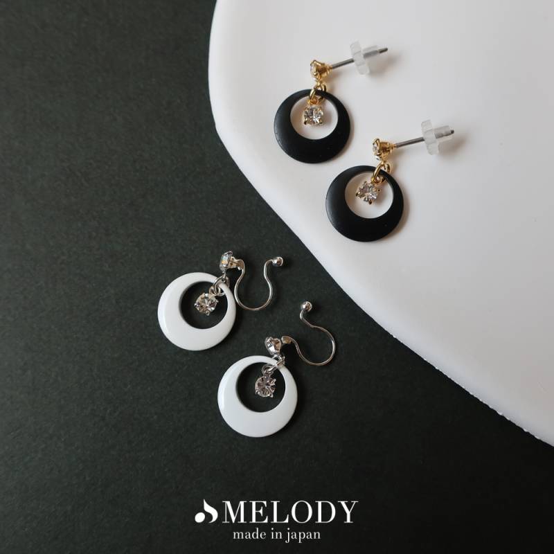 日本製 ブラック ホワイト オープンムーン イヤリング ノンホールピアス ピアス