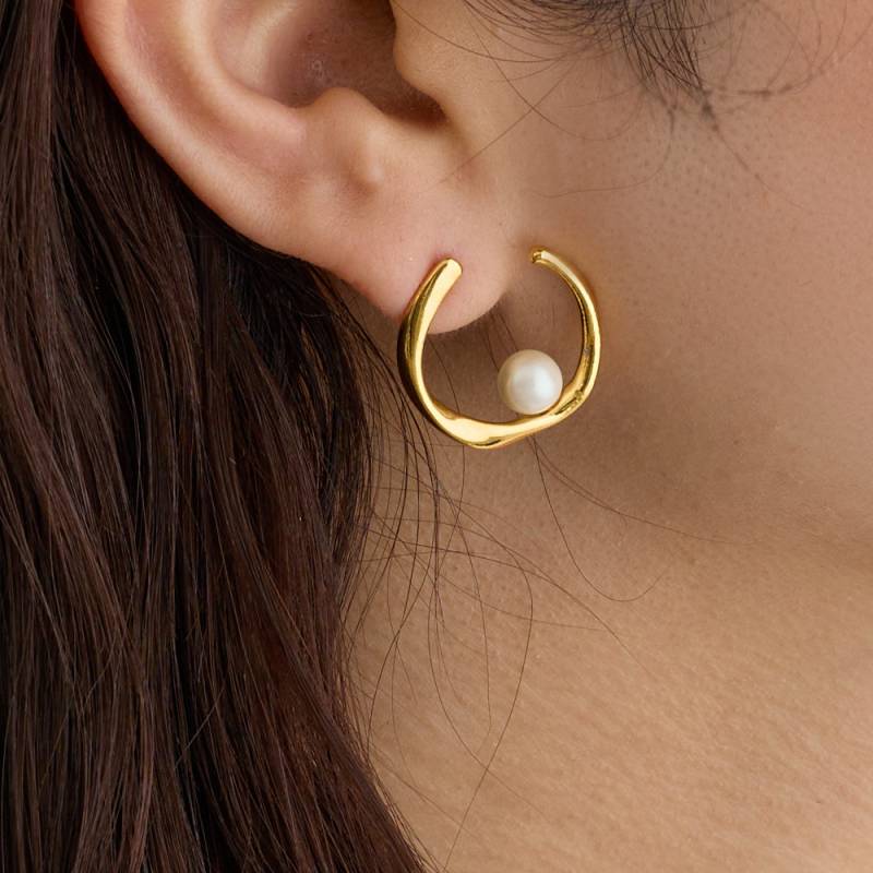 日本製 パールイヤリング ノンホールピアス 純チタン キャッチレピアス フープ