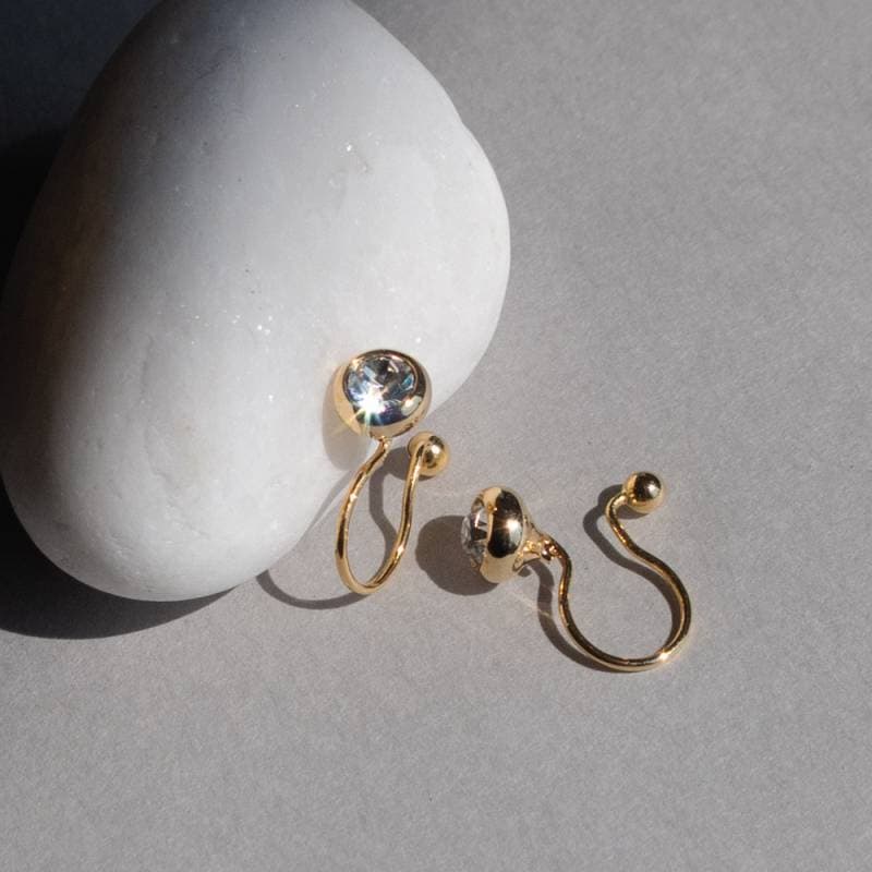 ピアスみたいなイヤリング 日本製 小ぶりストーン フープ ノンホールピアス 金属アレルギー対応