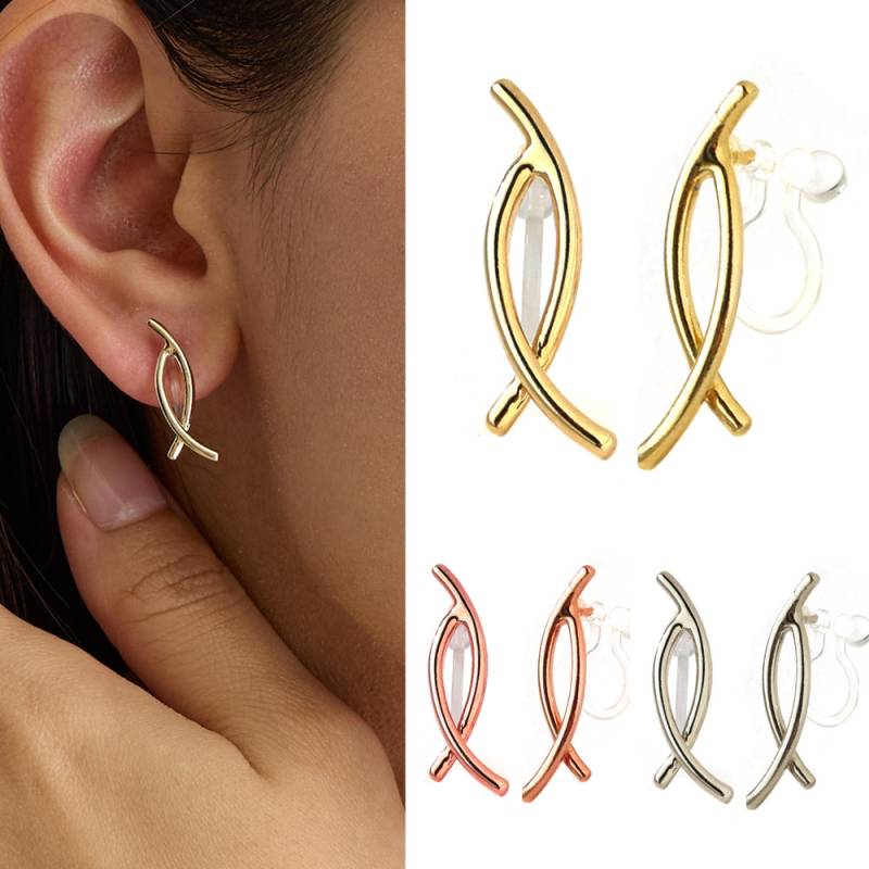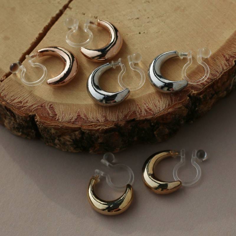 日本製 三日月 クレッセント イヤリング ピアス ノンホールピアス