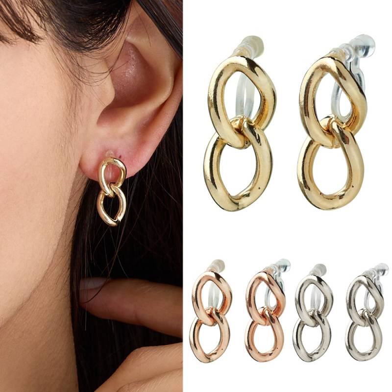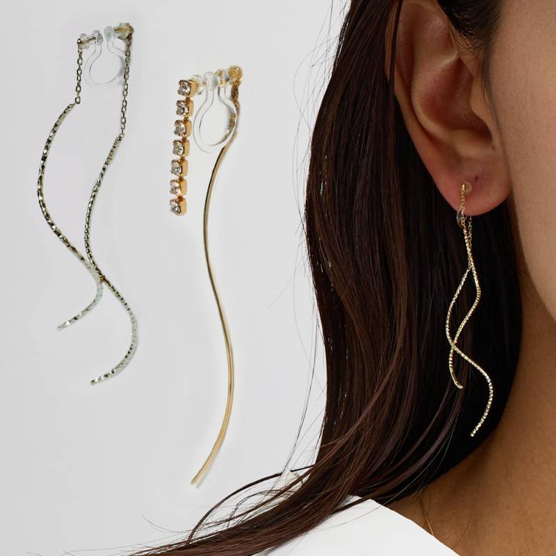 イヤリング 日本製 チェーン ノンホールピアス 金属アレルギー対応