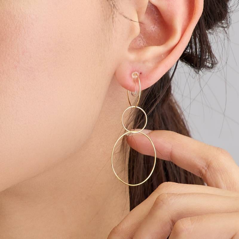 日本製 きらきら揺れる、大人の華奢 ハンギングイヤリングノンホールピアス