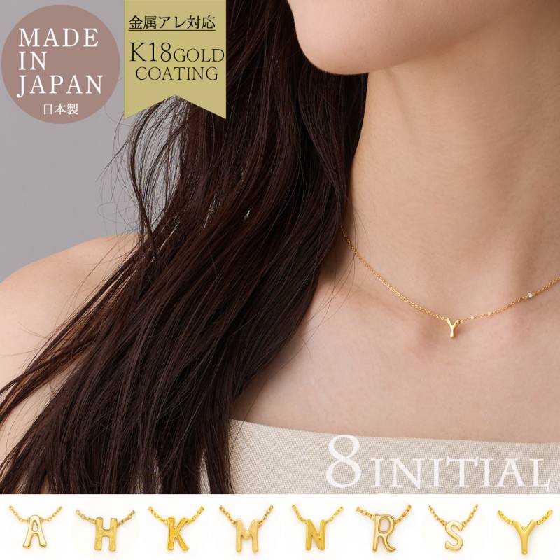 日本製 純国産 アクセサリー イニシャル ネックレス 金属アレルギー対応