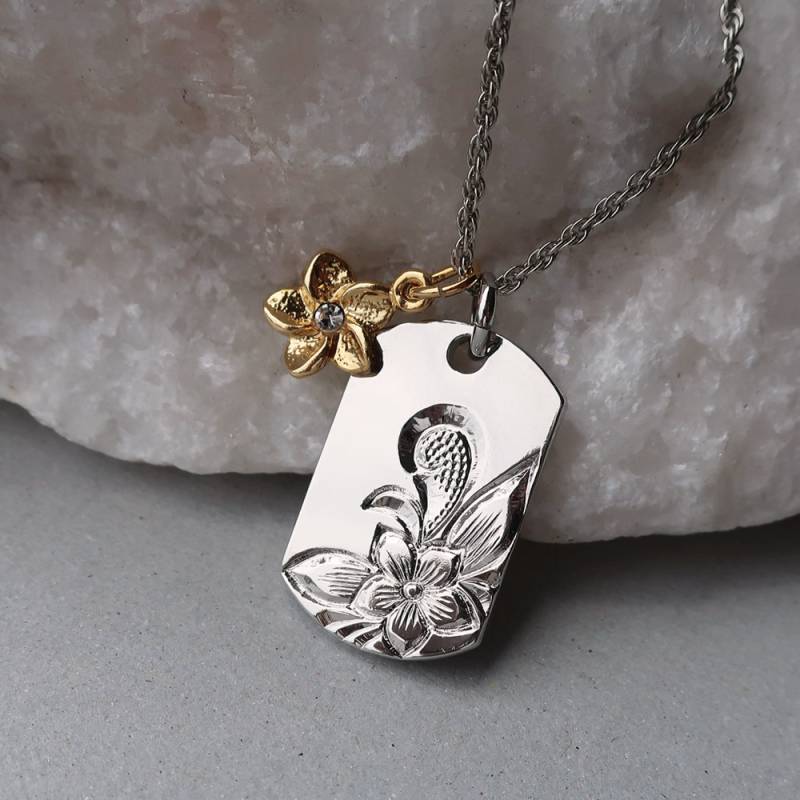 ハワイアン プリメリア チャーム プレート ネックレス 日本製