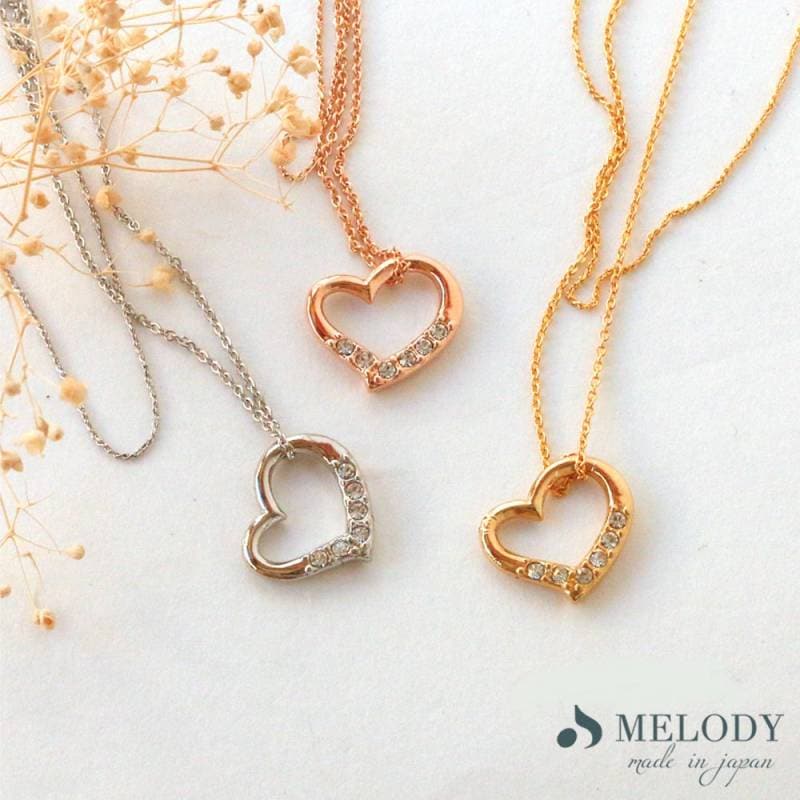 日本製 おしゃれ 重ねづけ風 2連ネックレス オープンハート