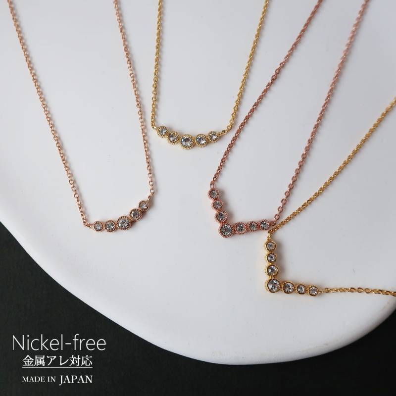 日本製 金属アレルギー対応 ミル打ち加工 ラウンド V字ネックレス