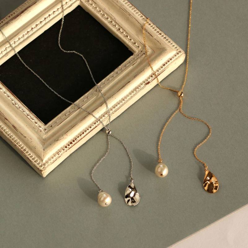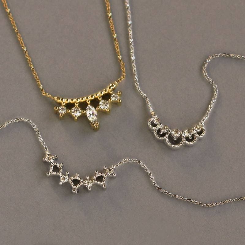 日本製 両面で異なるテクスチャの2weyダイヤカット加工デザインネックレス