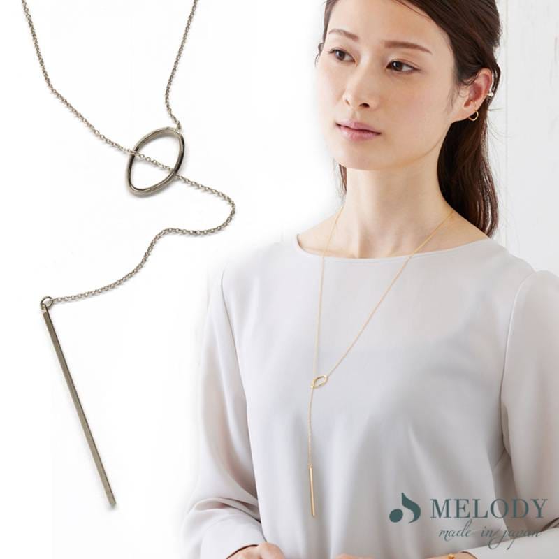 送料無料 日本製 洗練されたデザインの、チェーン煌めくパイプバーロングネックレス