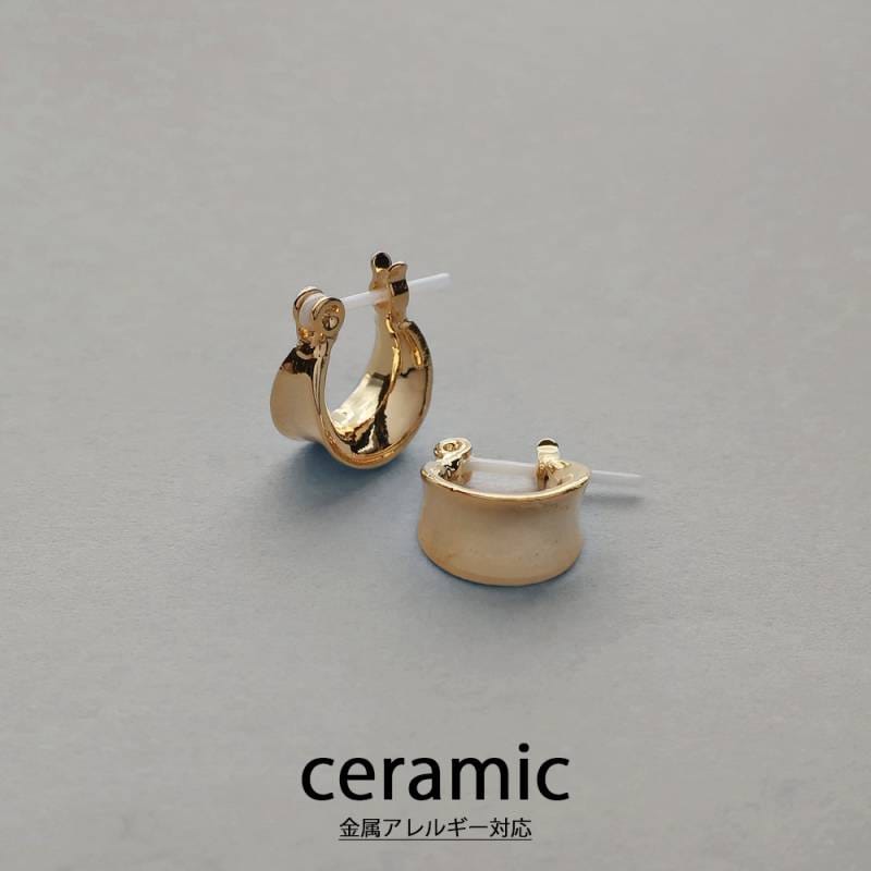 日本製 セラミック ピアス 金属アレルギー対応ピアス 小ぶり 反り フープピアス K18GP
