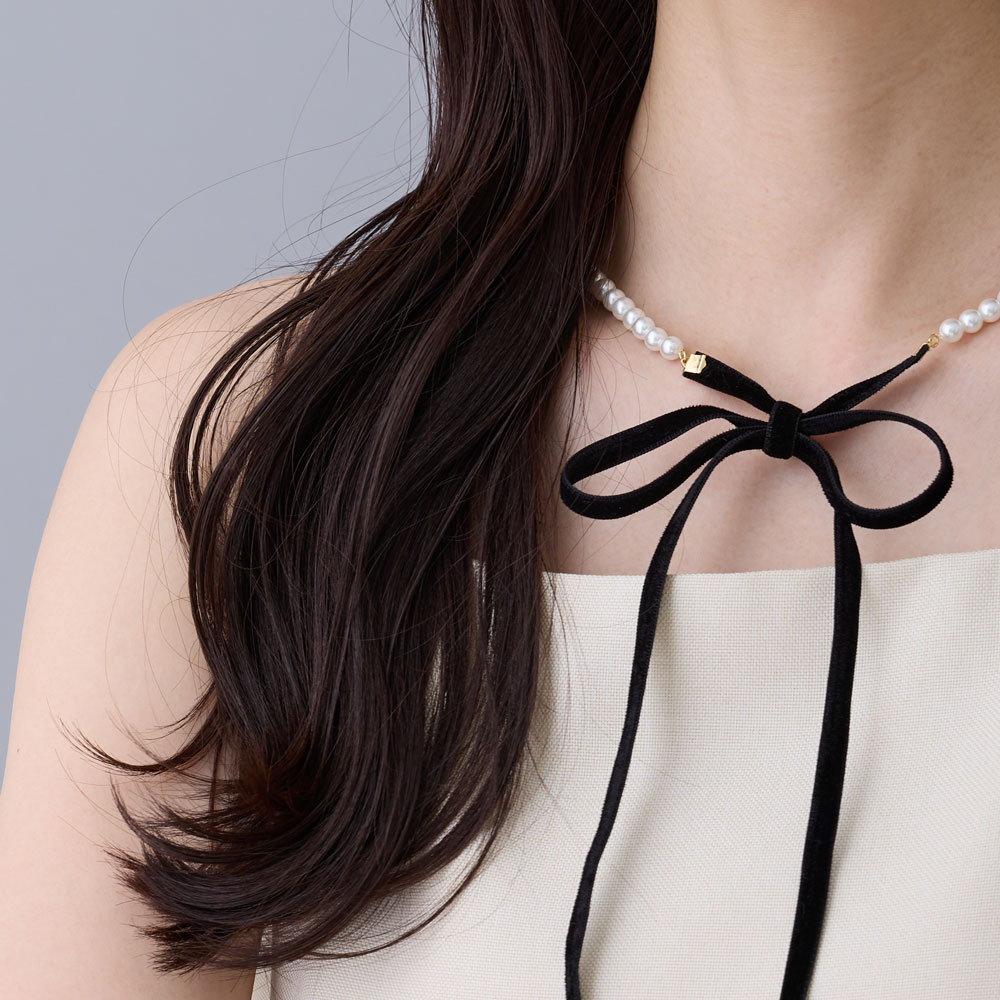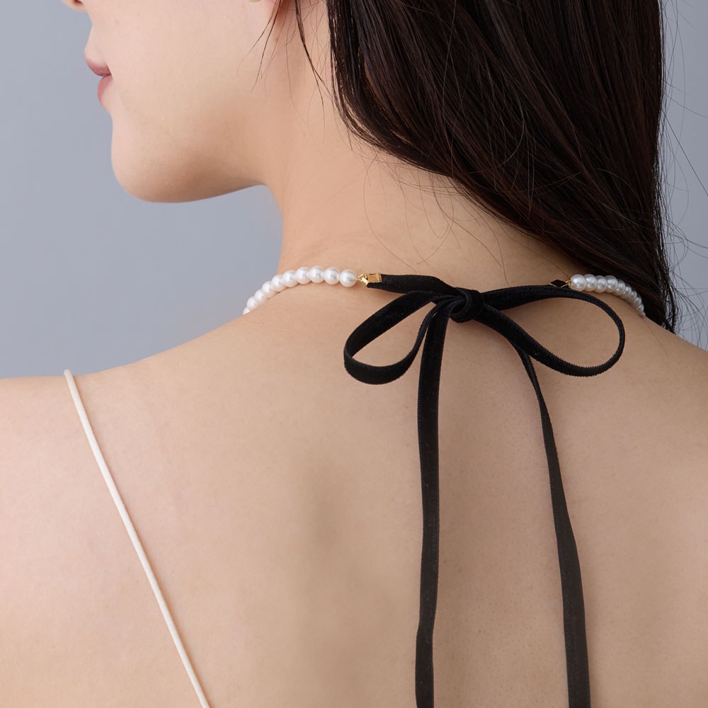 チョーカー パール リボンネックレス ロングリボンタイ ネックレス おしゃれ かわいい プレゼント ギフト 調整可能 フリーサイズ オケージョン ジュエリー 結婚式 入学式