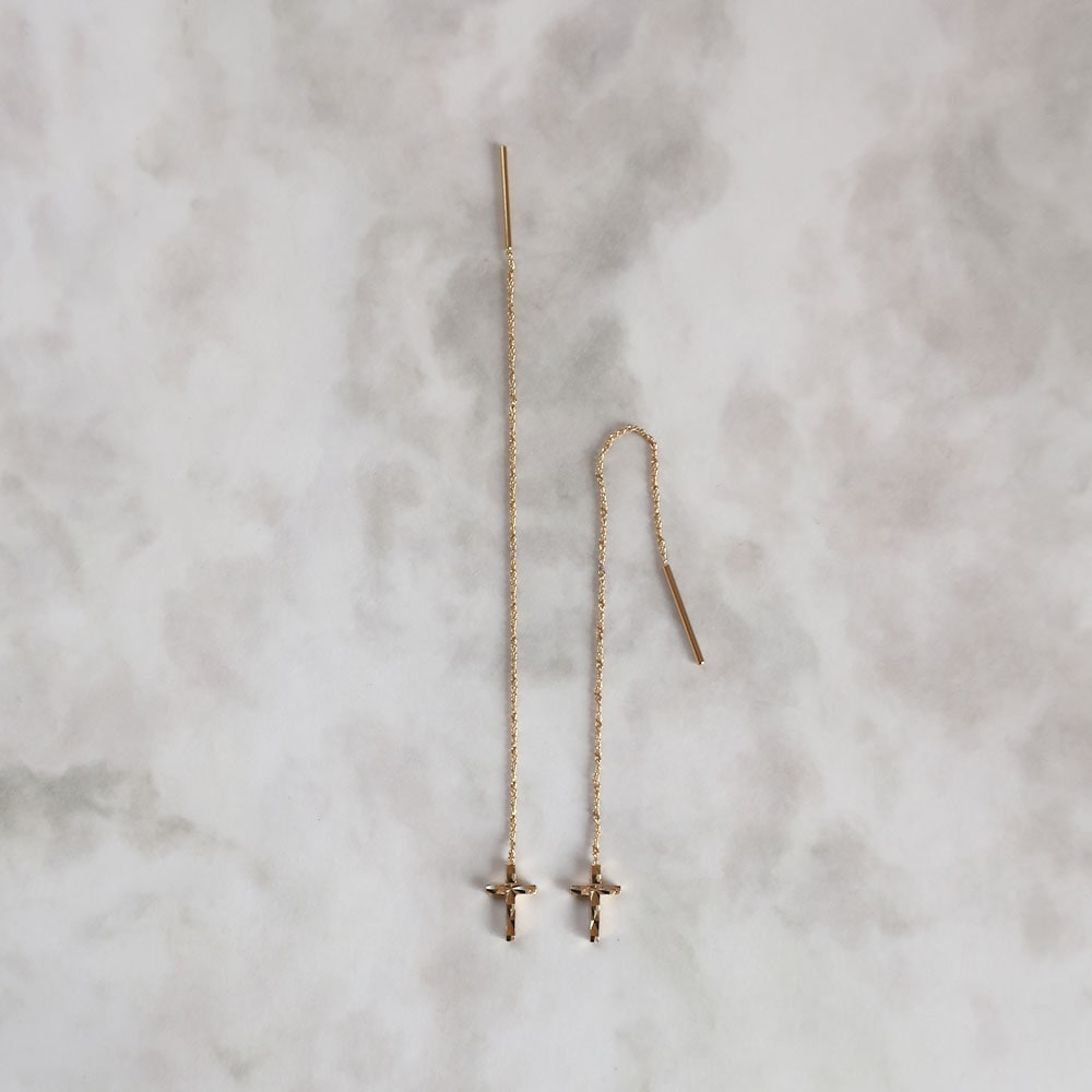 ピアス アメリカンピアス アメピア チェーンピアス 日本製 クロス 十字架 金属アレルギー対応 18kコーティング ニッケルフリー ダイヤカット加工 レディース 大人 上品 華奢 シンプル おしゃれ