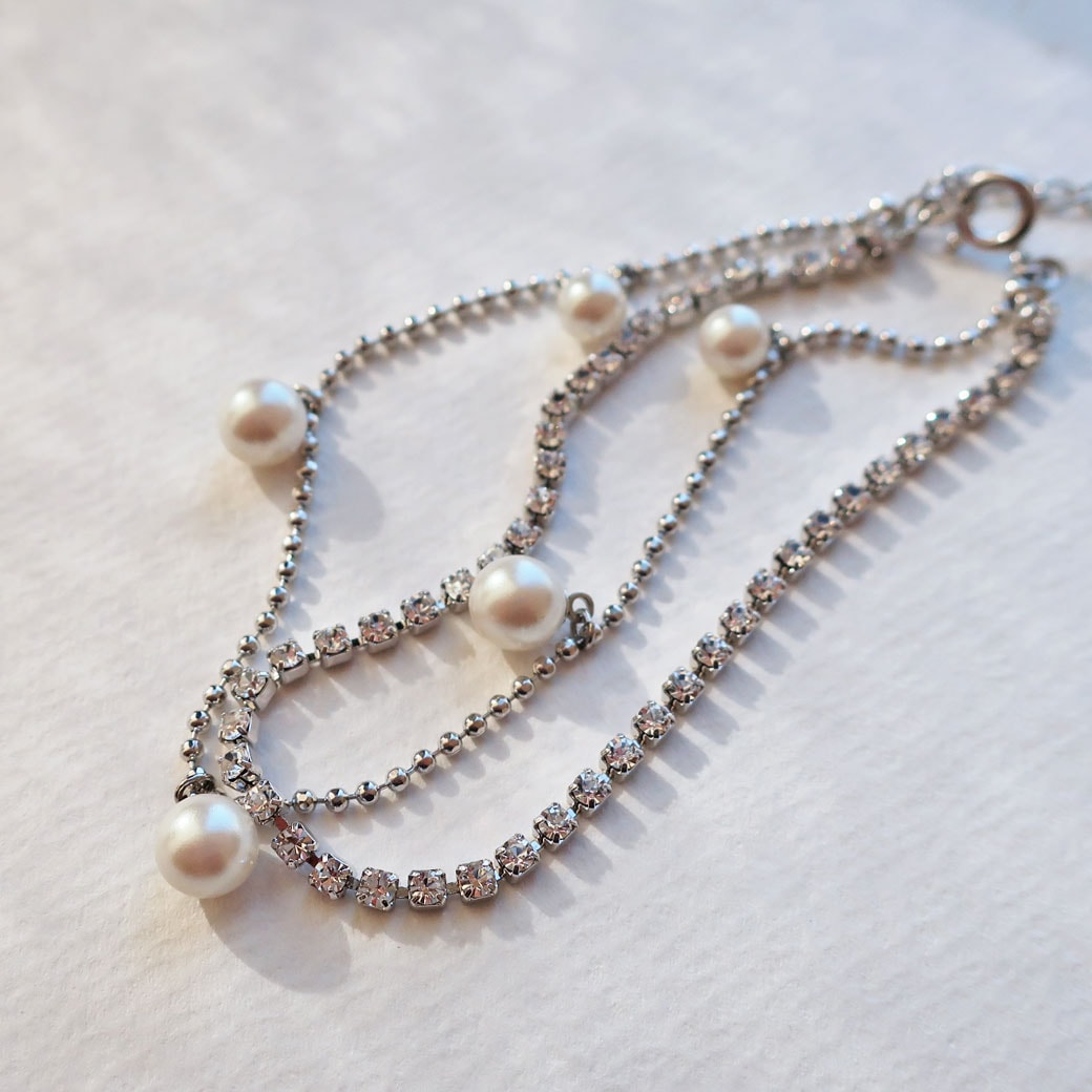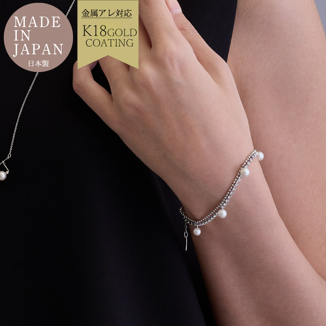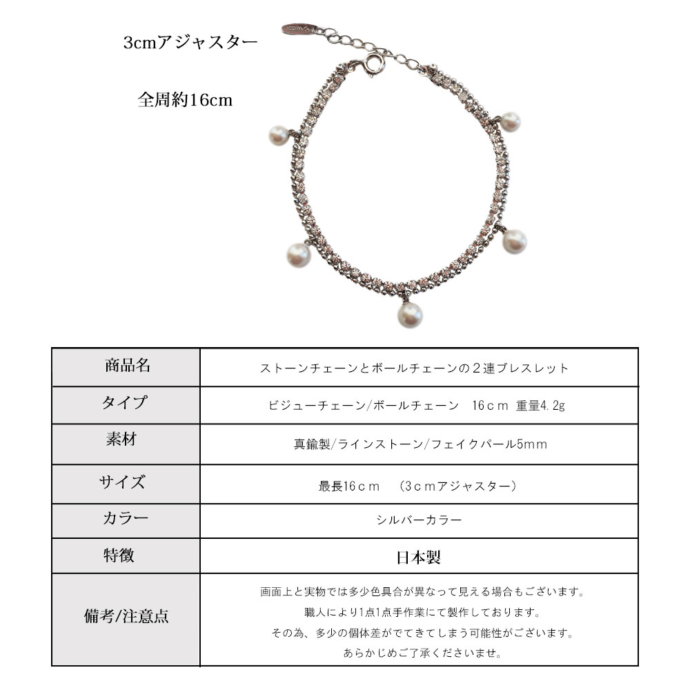 日本製 純国産 ラインストーンチェーン&ボールチェーン2連ブレスレット セレモニー 送料無料
