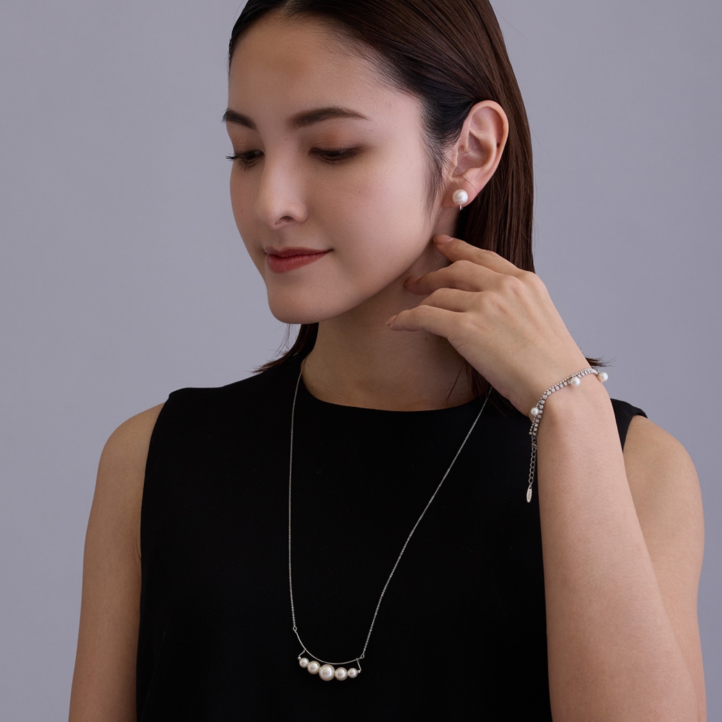 動くたびに揺れる小粒パールが柔らかな輝きを添え、女性らしい印象を引き立てます。