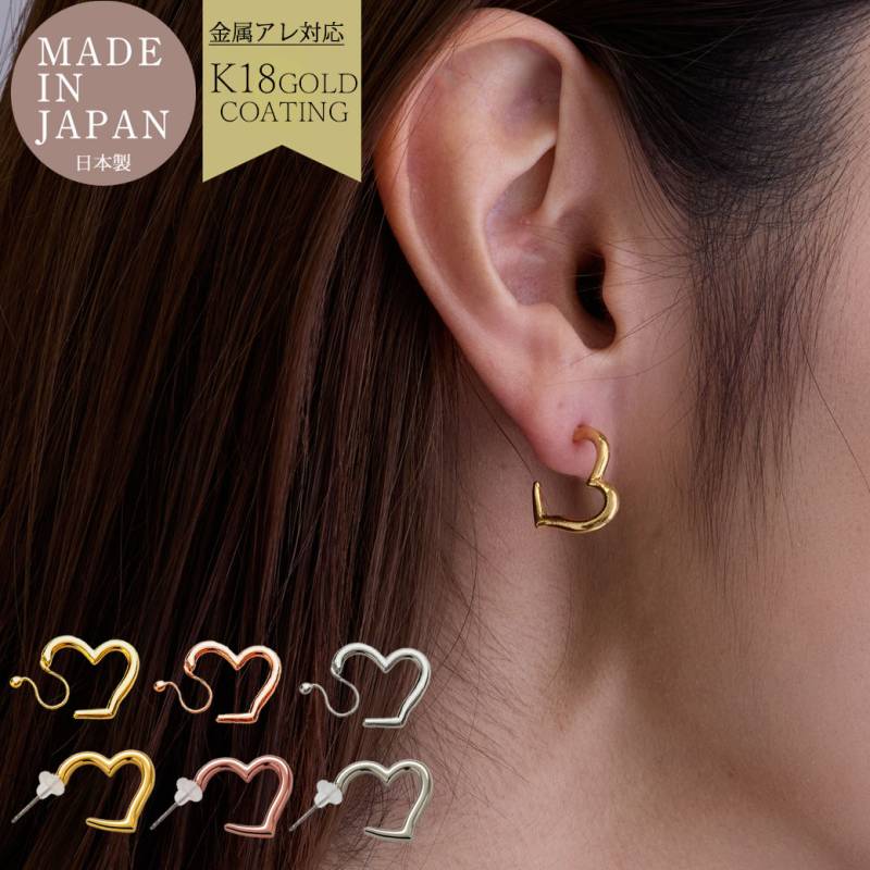日本製 純国産 ピアスみたいなイヤリング ピアス 日本製 K18GP オープンハート ノンホールピアス レディース 金属アレルギー対応