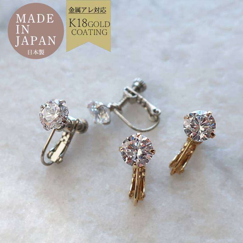 日本製 純国産 イヤリング キュービックジルコニア 金属アレルギー対応 4mm 5mm 6mm 送料無料