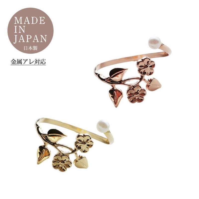 日本製 春を装うパール×フラワーモチーフの爽やかアンティークボタニカルリング