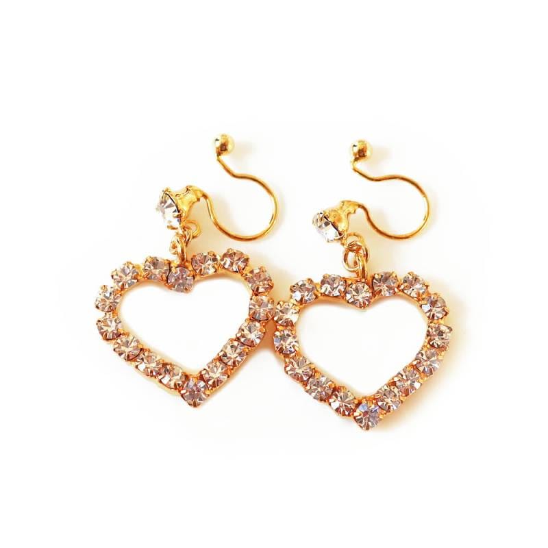 送料無料 日本製 かわいい オープンハート イヤリング ノンホールピアス
