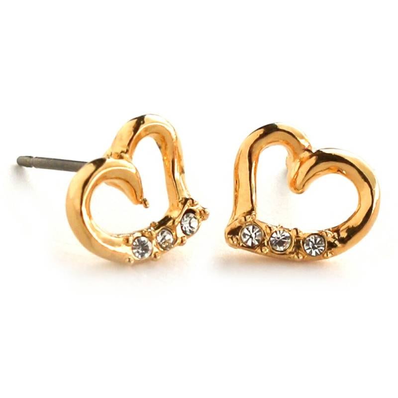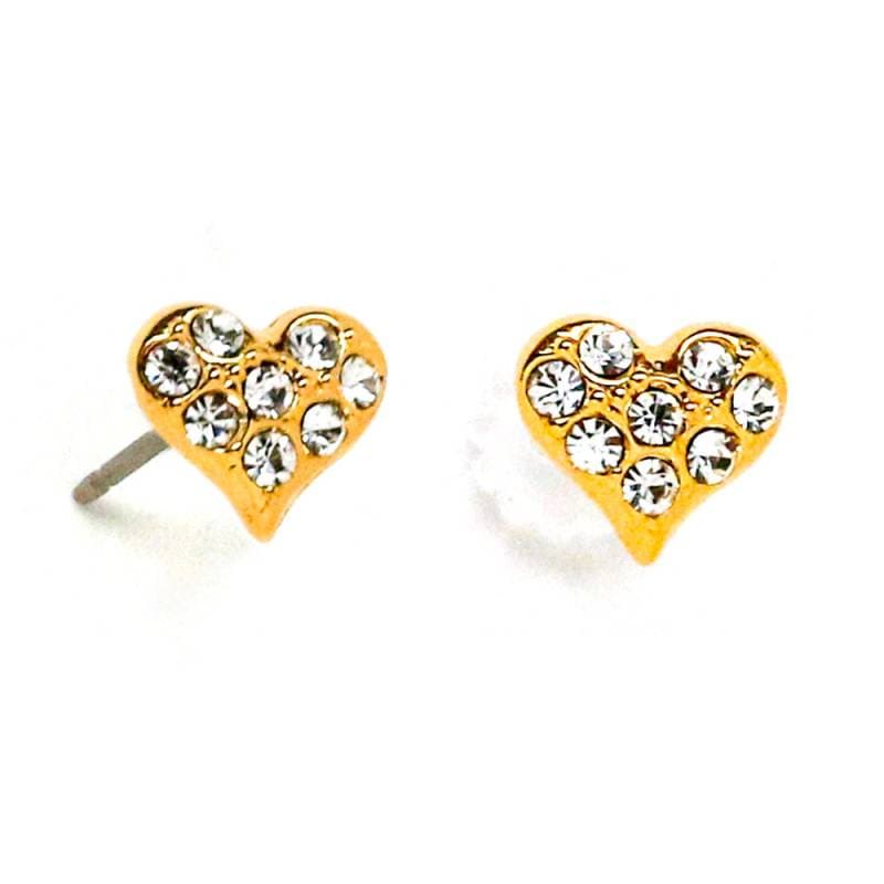 送料無料 ビジューが愛らしいハートモチーフスタッドピアス /純チタンポスト ee