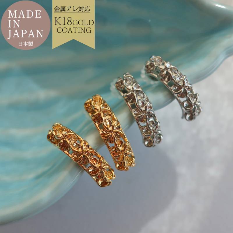 日本製 ハワイアンジュエリー プルメリア イヤーカフ 金属アレルギー対応
