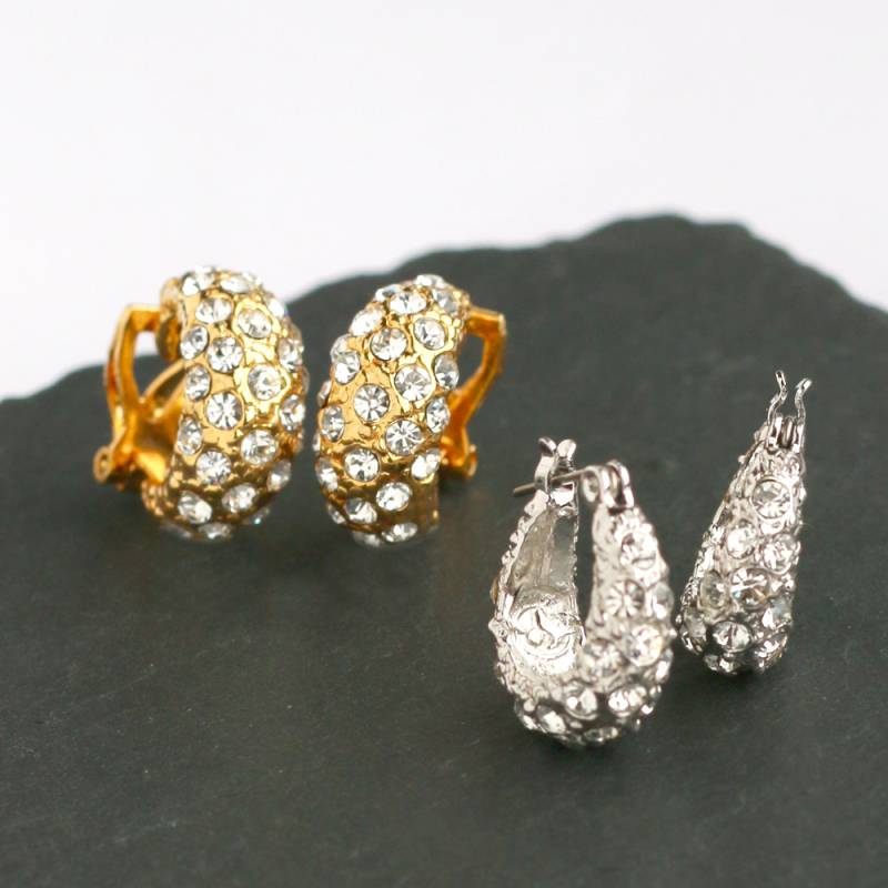 繊細に輝くパヴェストーンモチーフの大人顔フープキャッチレスピアス/クリップイヤリング