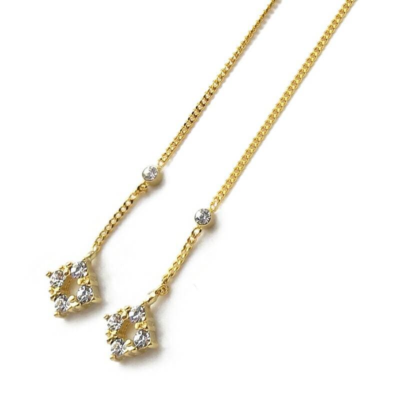 送料無料 日本製 ストーンが煌めくアメリカンピアス さんかく しかく チェーンピアス