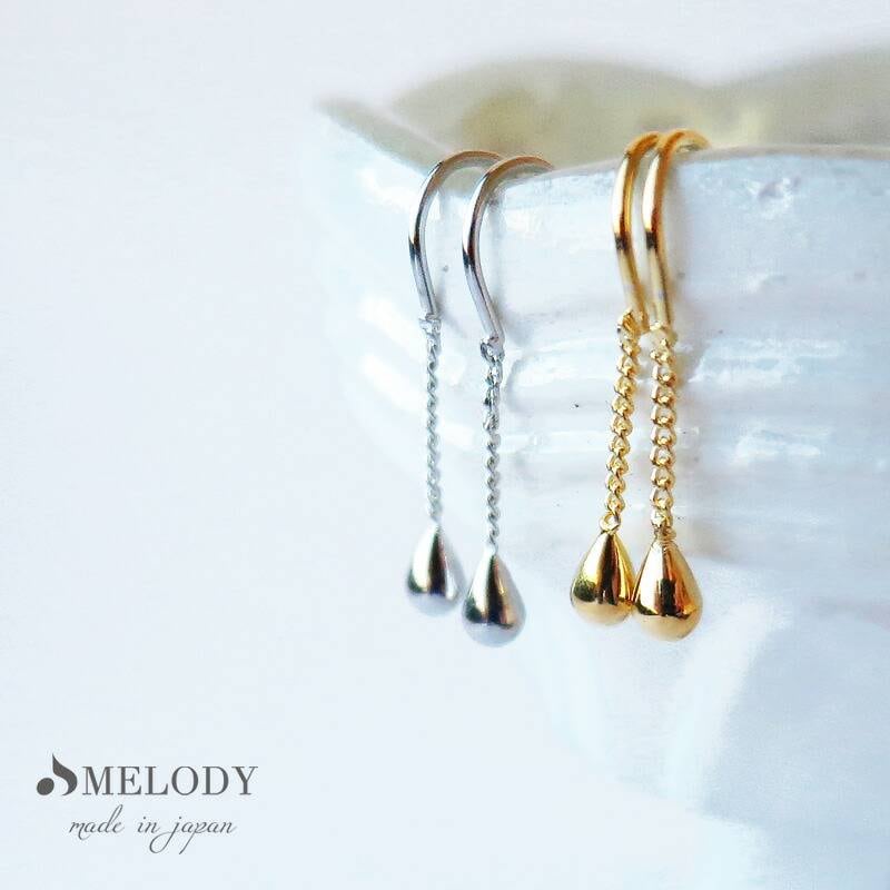 日本製 しずく ドロップ アメリカンピアス チェーンピアス K18GP