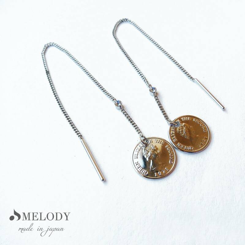 送料無料 coin 硬貨ロング アメリカンピアス チェーンピアス