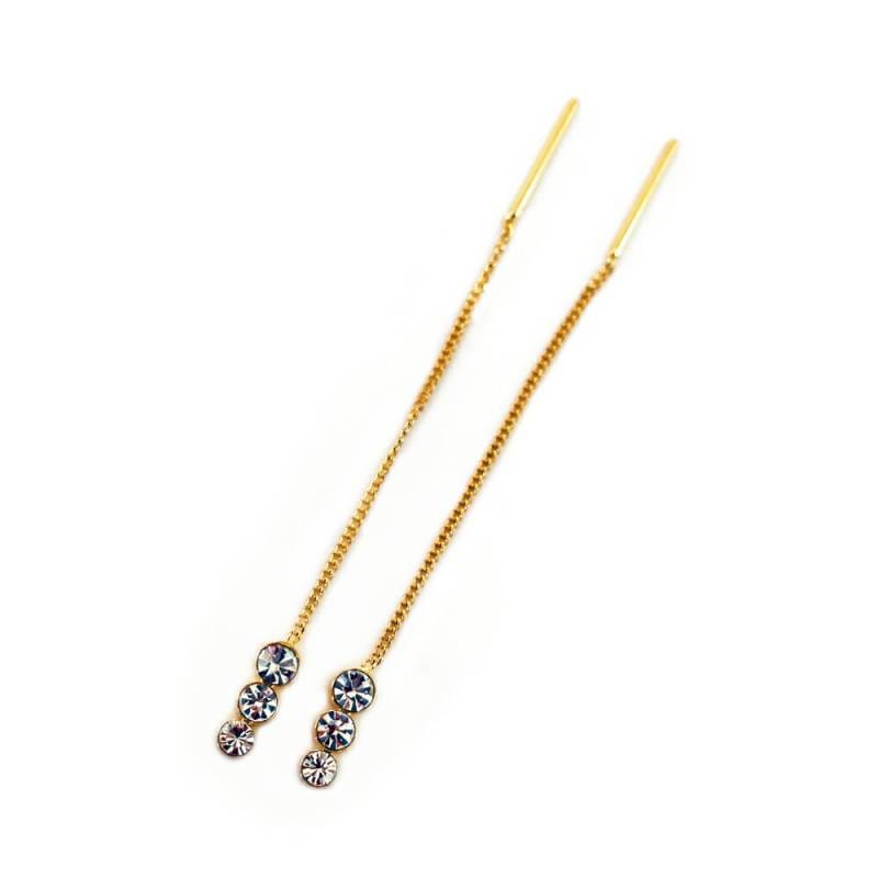 送料無料 一粒ストーンをあしらった、美人見えロングアメリカンピアス ee