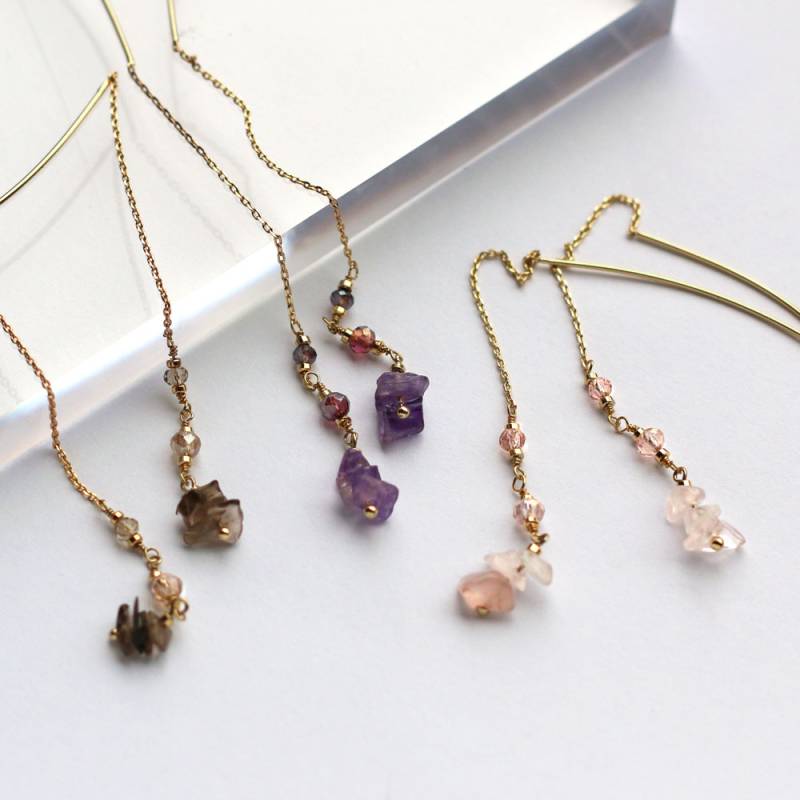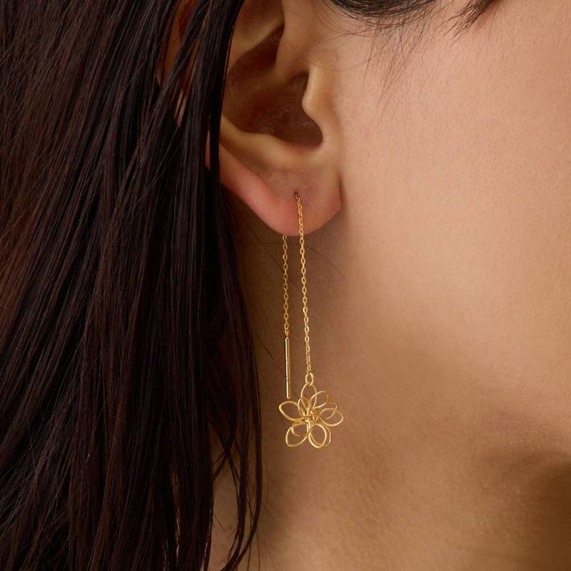 送料無料 ストーン フラワーアメリカンピアス チェーンピアス