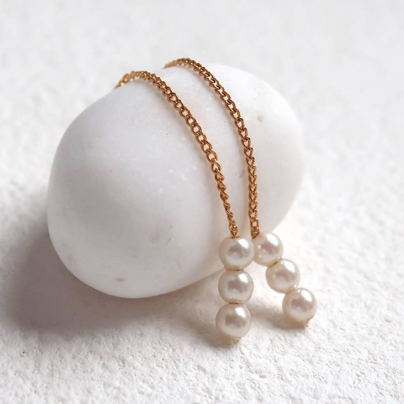送料無料 日本製 ふんわりまとう、淡水プチパールのスイングピアス チェーンピアス