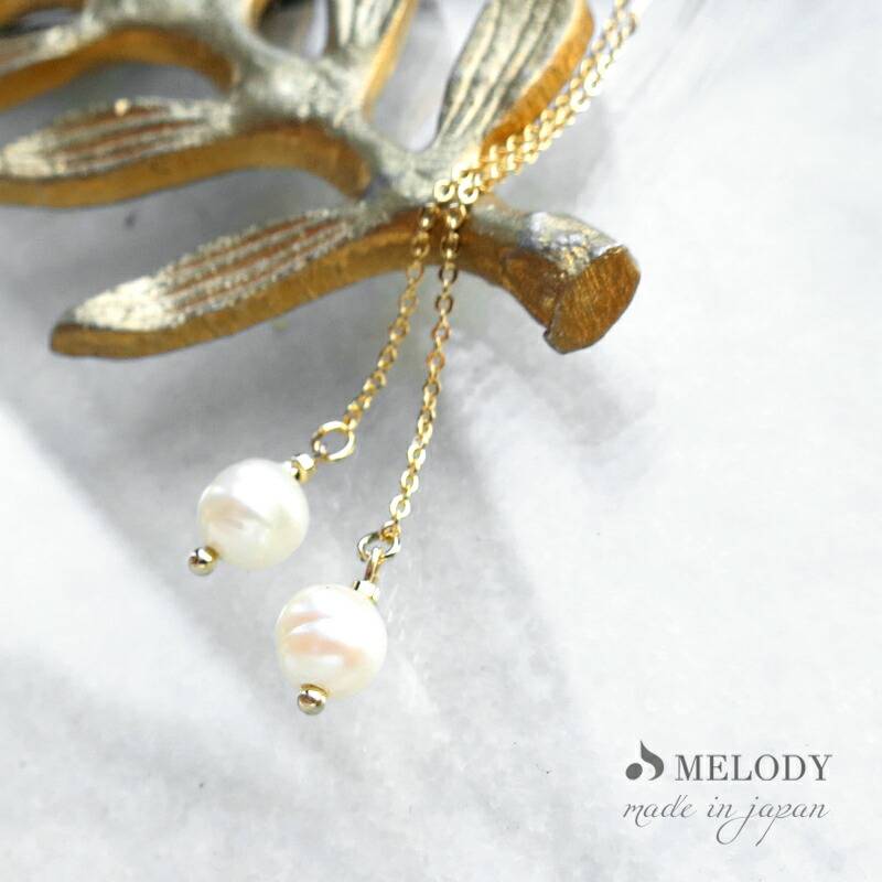 送料無料 日本製 ふんわりまとう、淡水プチパールのスイングピアス チェーンピアス